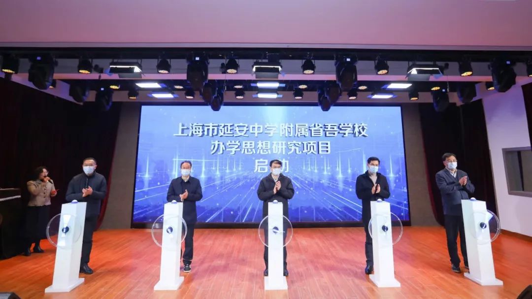 揭牌儀式中,區教育工作黨委副書記、教育局局長熊秋菊與延中附校校長李德元一同為新校揭牌;區教育工作黨委書記陳新華、華陽路街道辦事處主任劉于朋、上海市陳鶴琴教育思想研究會副會長兼秘書長胡道明等為“延中附校辦學思想研究項目”摁下啟動鍵,正式開啟延安中學與延中附校的融通發展之路。