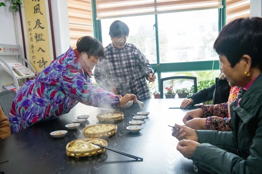 在睦鄰點負責人潘月珍的耐心指導下,大家共同制作了餃子,圍坐在一起邊吃邊聊,很是熱鬧。此前受疫情影響,漕涇鎮睦鄰點都暫停開放,這讓喜歡熱鬧的潘月珍難免有些孤獨。如今,看到姐妹們再次相聚,她感慨萬分。