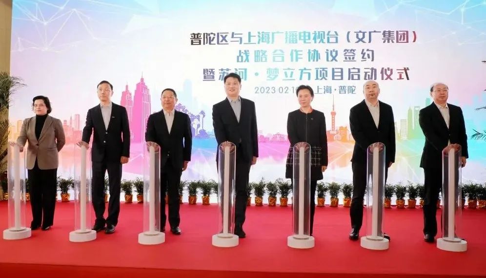 上海文廣集團黨委書記、董事長、東方明珠新媒體黨委書記、董事長沈軍,上海文廣集團黨委副書記、臺長、總裁、東方明珠新媒體副董事長宋炯明,上海文廣集團黨委委員、東方明珠新媒體總裁劉曉峰;普陀區委書記姜冬冬,區委副書記、區長肖文高,區委常委、宣傳部部長劉東昌,副區長王玨出席,并共同啟動“蘇河·夢立方”項目。上海文廣集團相關企業負責人,普陀區相關單位負責同志參加。