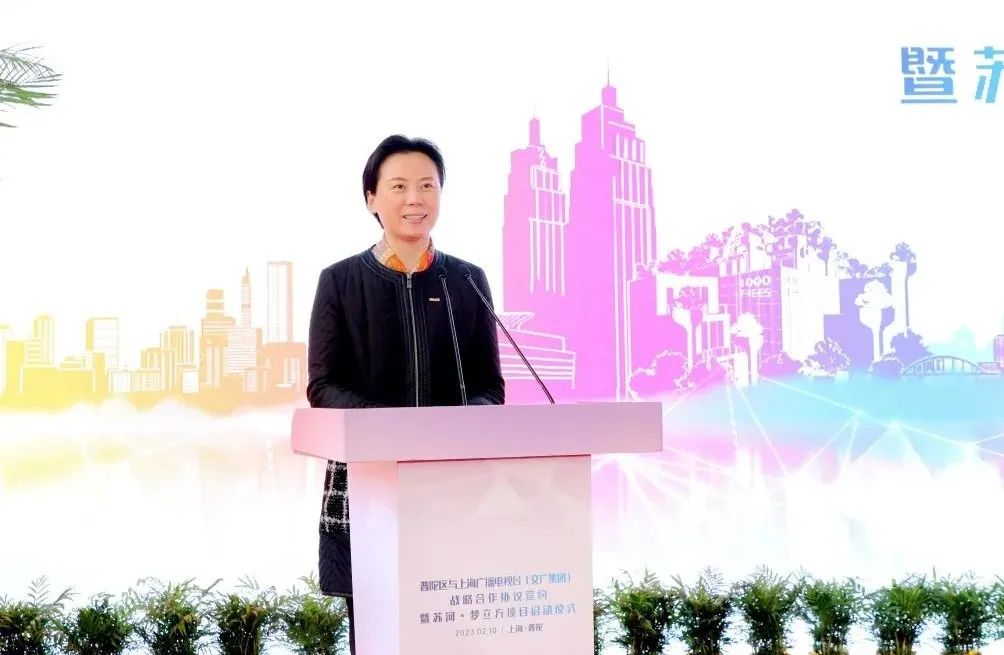 “今天啟動的‘蘇河·夢立方’項目,是雙方攜手打造的經典之作。這既是傳統業態‘騰籠換鳥’、轉型升級的一次探索,也是城市空間功能再造、創意賦能的一個樣板?!苯谥罗o中表示,普陀區與上海文廣集團淵源很深,無論在打造“半馬蘇河”,還是發展文創產業方面都有很大的合作潛力。此次戰略合作簽約,繪就了雙方理念互通、優勢互補、合作互利的美好愿景。期待雙方從蘇河·夢立方出發,積極探索更多“文旅+”的融合項目,扮靚蘇河美景,打造城市新空間;深耕文創產業特色細分領域,前瞻布局產業發展新賽道,拓展產業版圖,注入發展新動能;打造更多喜聞樂見、出新出彩的精品內容和新媒體產品,推動傳媒創新,書寫改革新圖景。普陀區委、區政府將發揚“人靠譜(普),事辦妥(陀)”的精神,為上海文廣集團發展創造更有利條件、搭建更廣闊舞臺,共同鑄造新典范、成就新夢想。