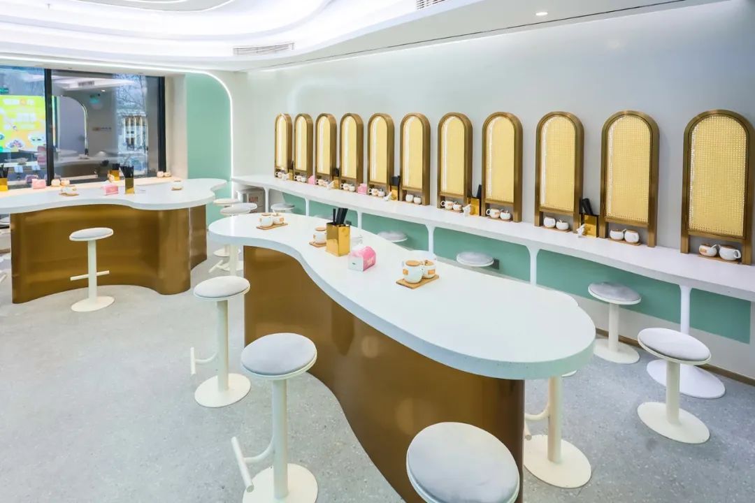 走進“小AI智面局”,屋頂動感的流線與不規則的桌子相互映襯,藤條編制的裝飾更增添了別具一格的腔調,為樓宇白領營造了一個舒適愜意的用餐環境。