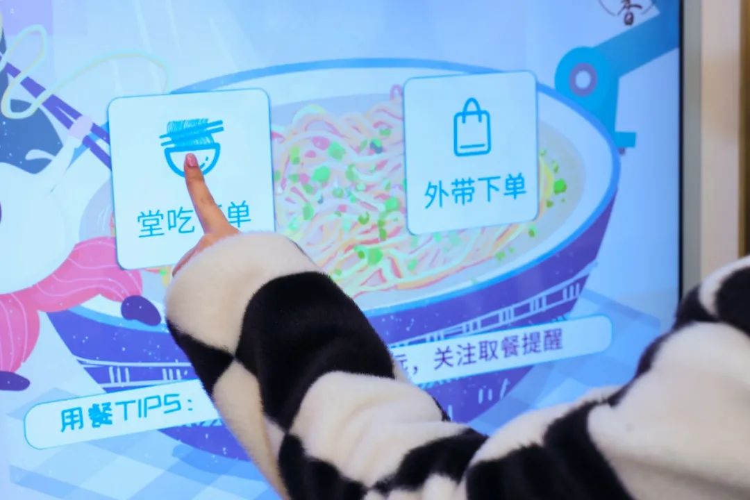 “我們只需將精選的面粉放入機器內的面粉區,剩下的包括面條的壓制、煮面、添加澆頭都由機器自動完成,大大節省了人力?!蔽跸闶聵I運營部經理范艷萍向記者介紹,顧客只需在餐廳門前通過點餐屏幕或二維碼選購、下單、支付即可。機器大廚就會自動接單“工作”。