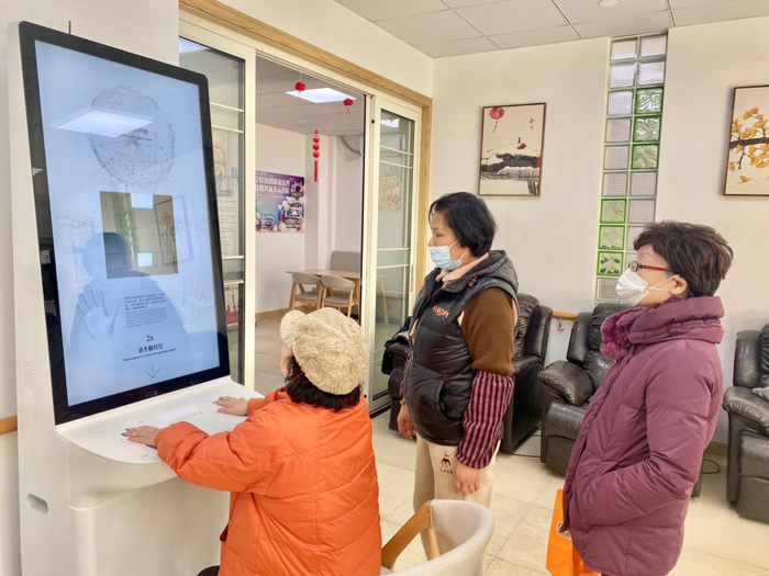 在范北樂鄰之家,新近引入的健康監測一體機可實時為老年人檢測心電圖、血氧、血壓等健康指標,并形成一份《健康篩查體檢報告》,成為社區老年居民熱衷的一項新體驗。