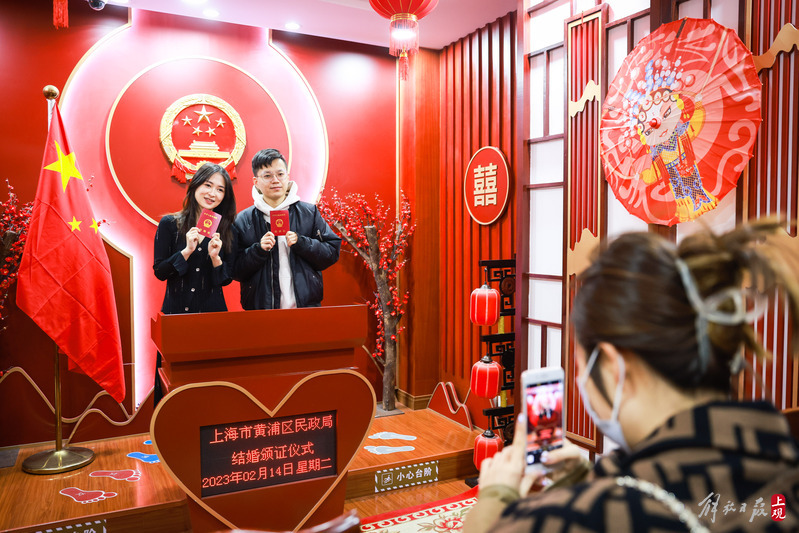2023年2月14日,上海各個婚姻登記機構迎來領證小高峰。