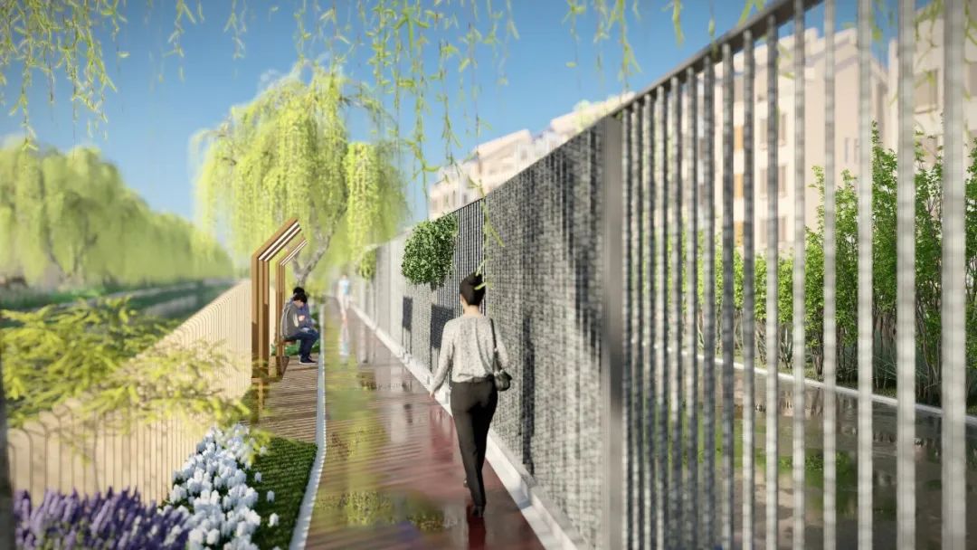 其中一期項目主要是對周浦擷陽進行大修,三期項目(新涇港至劍河路)增設綠化、濱水棧道、文化墻體、景觀設施。通過一期、三期微更新,將周家浜沿岸建設成水鄉韻味凸顯、道路四季繽紛、休憩空間共享的“新涇濱水活力帶”。