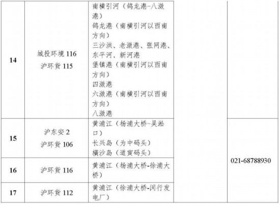 我市已開行17條船舶污染物流動接收線路(詳見下表),通過流動接收船對污染物進行巡航式接收,并由船舶污染物接收服務調度中心統一調度。