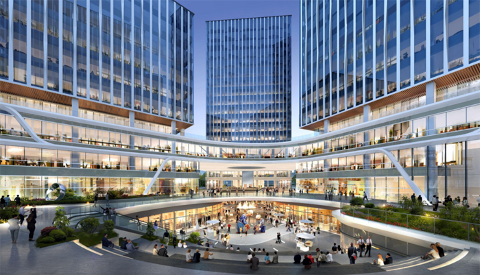 項目所包含的五棟辦公樓宇將突破原始邊界,相互連接,創造出一座獨特的“云上花園”,營造聯結互通、激發靈感的社區氛圍。同時,通過多首層的創新空間設計,項目還打造了陽光式下沉廣場,融入城市立體功能,打破工作與社交、室內與室外、地上與地下的多重界限,實現辦公、商業與休閑的無縫鏈接,以豐富的商業空間層次,帶來不同的用戶體驗。