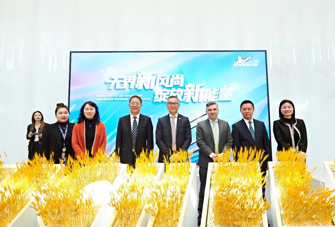 2月20日上午,米其林中國區總部辦公樓啟用儀式在臨空園區舉行。法國駐滬總領事王度(Joan Valadou),長寧區副區長、一級巡視員翁華建出席活動,并與米其林中國區總裁葉菲及中國區員工共同啟動由金黃色麥穗組成的“共創裝置”。