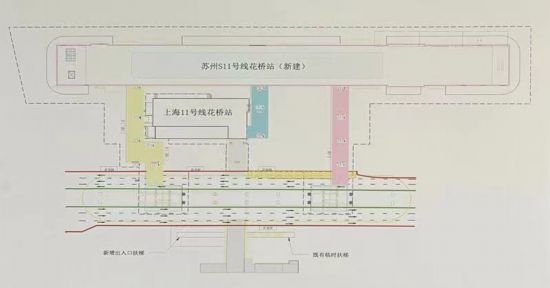 據介紹,蘇州市軌道交通11號線花橋站(新建)換乘上海地鐵11號線花橋站共有三座空中走廊,整個換乘時間預計控制在5分鐘內。