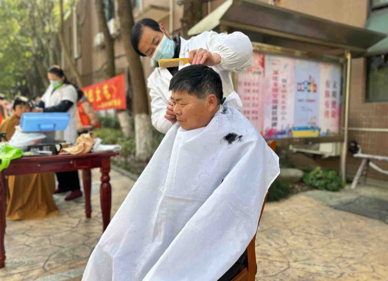 在理發攤位前,更是排起了長隊。每個前來理發的居民,志愿者都耐心聽取居民對發型的要求并予以滿足,贏得了大家的贊揚。
