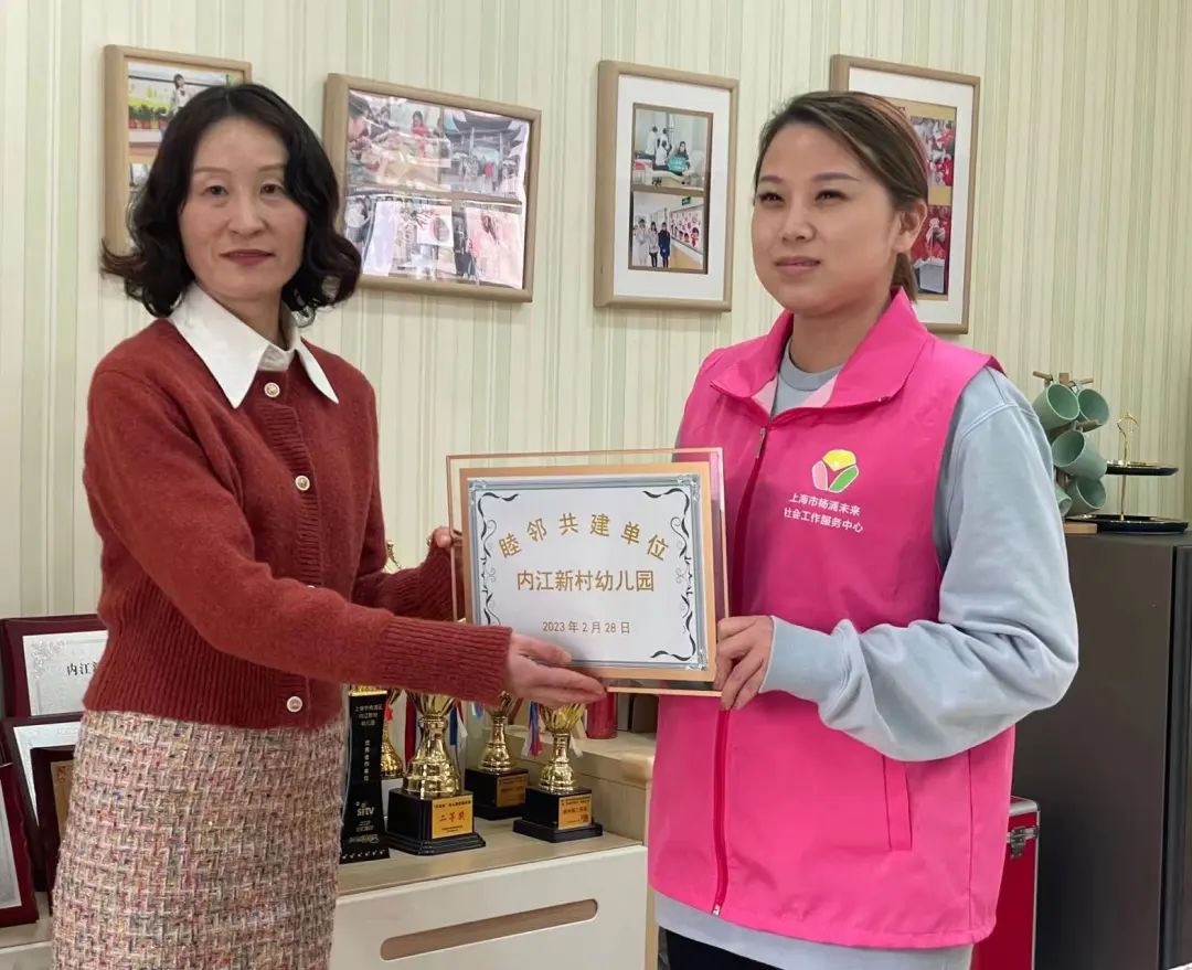 活動當天,來自延吉社區第四睦鄰中心和內江新村幼兒園的代表完成了“睦鄰健康聯盟”的授牌儀式。未來,睦鄰中心將以健康服務為切入點,聯動合作,讓社區、園區共享健康資源,共創健康成果。這也標志著延吉社區第四睦鄰中心聯動轄區內的各類公益慈善資源,探索“構建社區健康網絡,營造敦親睦鄰共同體”工作的啟動與實施。
