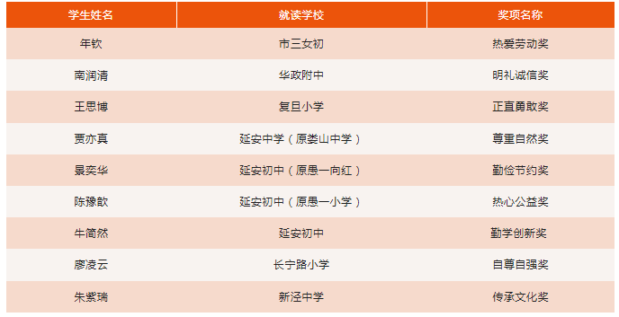 長寧這9名中小學生獲評上海市百優“新時代好少年(美德少年)”