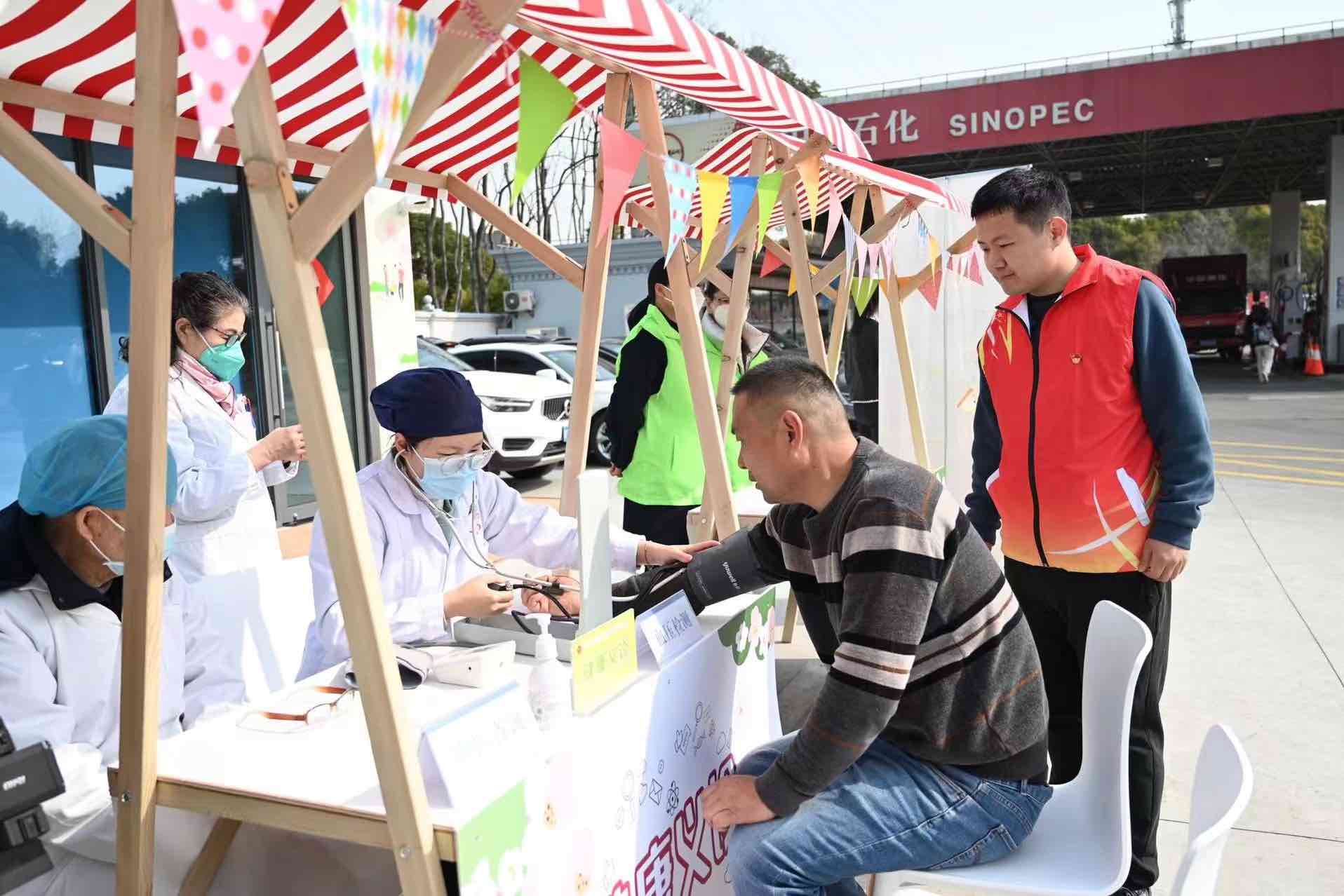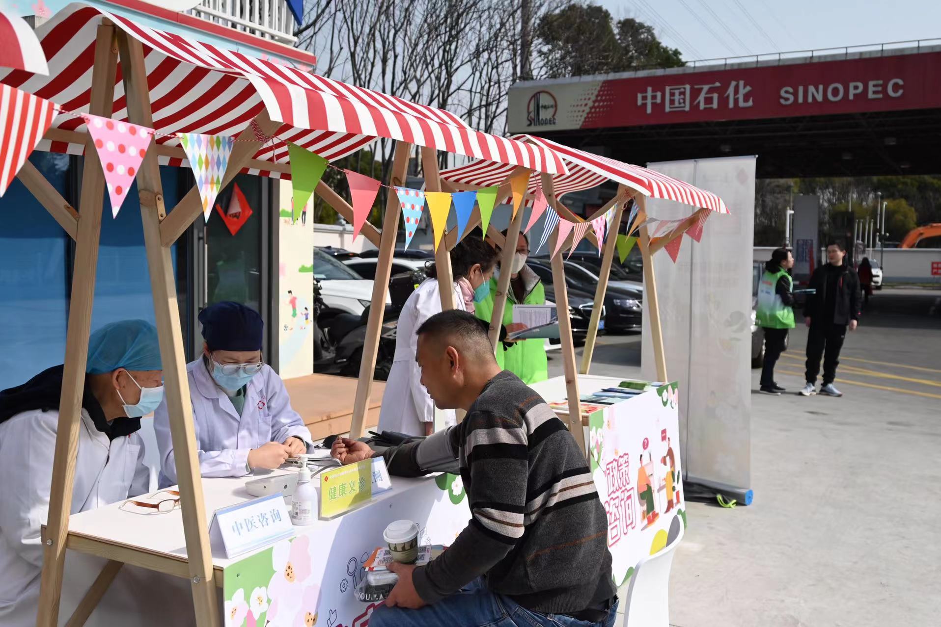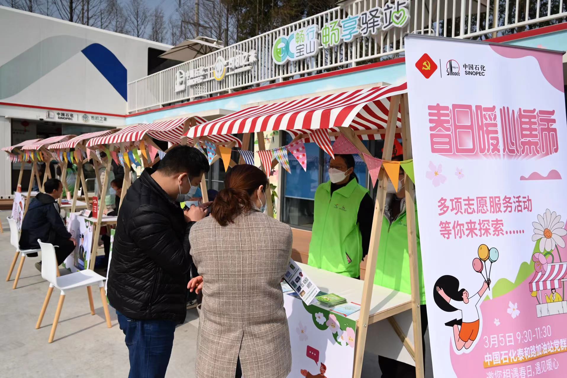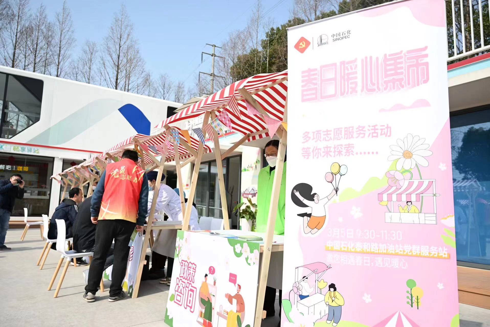 3月5日上午,在中國石化泰和路加油站黨群服務站,一場別具特色的“春日暖心集市”火熱開市,身穿各色“馬甲”的志愿者們在學雷鋒活動“攤位”間來回忙碌,卡車司機和周邊居民在“攤位”前享受免費咨詢。