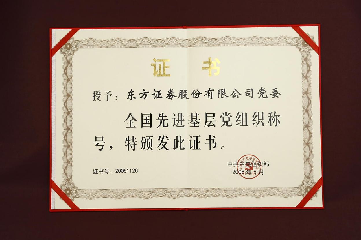 正是從上而下一以貫之地堅持黨的領導、加強黨的建設,東方證券黨建工作成績斐然,2006年獲評中央組織部頒發的“全國先進基層黨組織”榮譽稱號,成為證券行業首家獲此殊榮的公司。公司黨委也從最初的6個基層黨組織、40余名黨員發展壯大為如今擁有70個直屬黨組織、2000余名黨員。