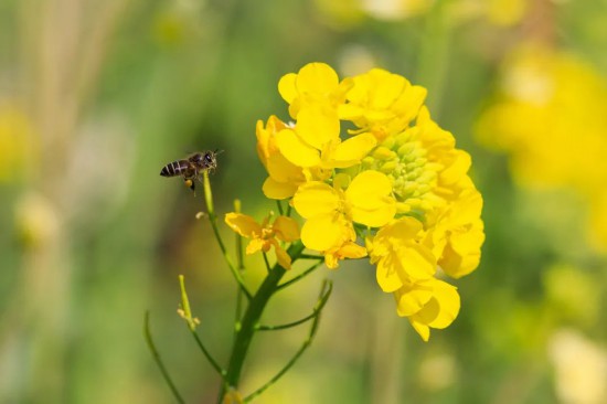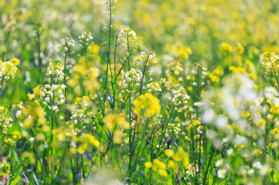 春風吹拂,連片的油菜花在田間舞動,一朵朵、一簇簇在春風里昂首怒放,展示其迷人的風姿,徜徉在彩色的花田里,流連忘返。