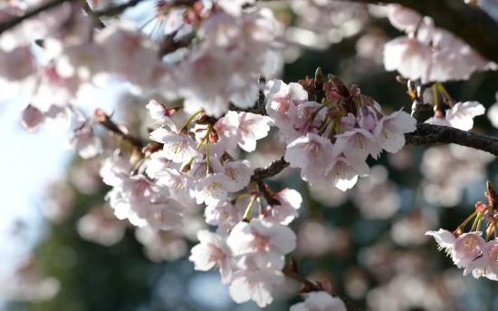 河津櫻,薔薇科櫻屬落葉小喬木,為寒緋櫻和大島櫻的自然雜交品種,因在日本靜岡縣賀茂郡河津町被發現而命名,是上海地區最早開放的早櫻品種之一,其花瓣較常見的櫻花品種大,花色呈甜美粉色,盛開時花量極大。