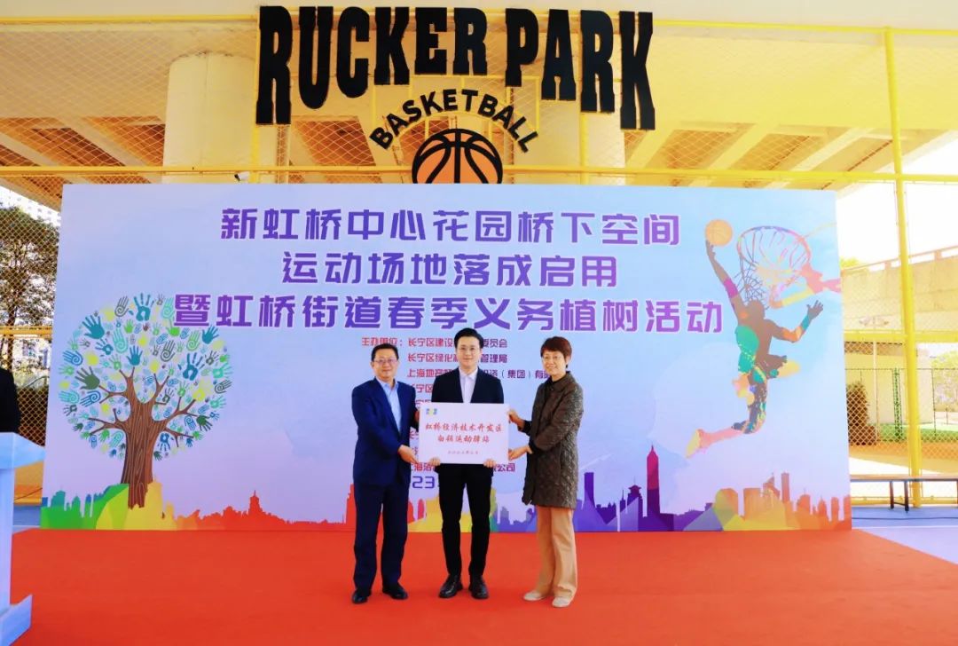 當天上午10點,新虹橋中心花園橋下空間運動場地落成啟用以及虹橋街道春季義務植樹活動在這片嶄新的籃球場內拉開帷幕。區政協副主席池捷出席活動,區建管委、區綠化市容局、上海地產虹橋建設投資(集團)有限公司、虹橋街道以及區文旅局、區體育局、區虹橋辦等部門共同見證了場館啟用的重要時刻。?