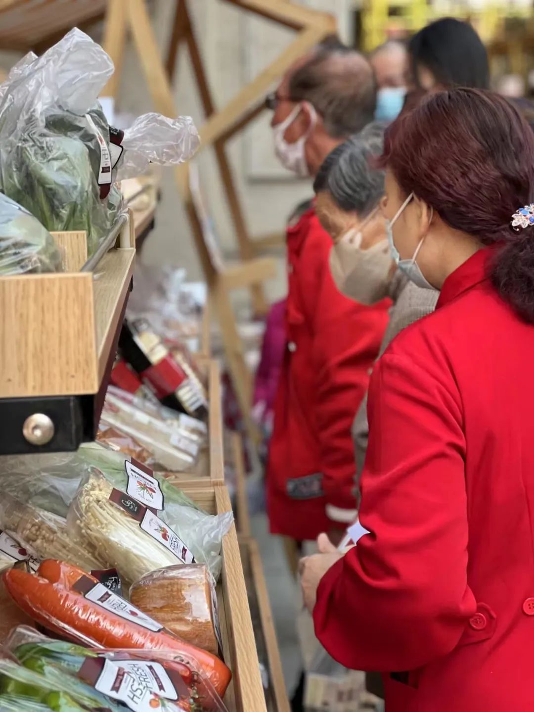 仙霞新村街道茅臺路附近一直以來缺少便捷的線下買菜渠道,對于許多腿腳不便的老年人來說,菜市場又距離太遠,不是很方便。為了滿足轄區內居民便利、就近的買菜需求,仙霞新村街道與轄區內的城市超市合力打造出了家門口的便民服務市集——“城市好菜集”。在這里,蔬菜、肉類、奶制品、零食等一應俱全,為社區居民提供家門口的鮮食便利。