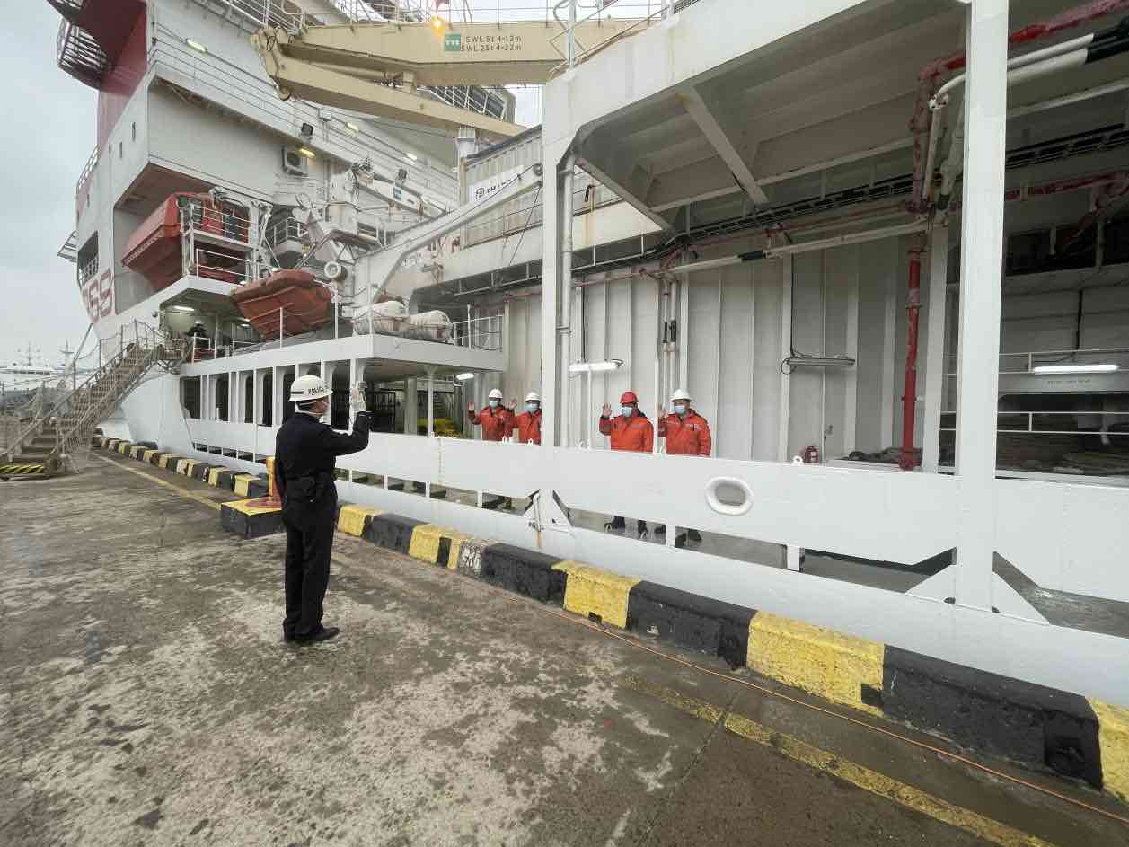 執行跨洋海底光纜搶修任務,時間緊任務重,該船還有11名上船船員和12名下船船員的手續急需辦理!接到企業求助后,金山邊檢站特事特辦,迅速開啟“綠色通道”,選派經驗豐富的民警辦理船員換班手續,同時,加強與口岸聯檢單位的溝通聯系,通過單一窗口平臺數據互聯互通,讓數據多跑路、讓企業少跑腿,第一時間為船舶辦理好出境邊防檢查手續。