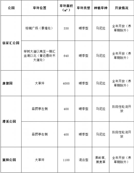 徐匯區屬公園草坪開放一覽表