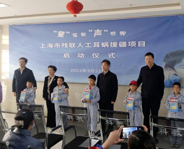 活動中,上海市殘聯、喀什地區行署、葉城縣委領導分別向5名殘疾兒童贈送康復設備?,旣惼G·木沙介紹情況說:“這是我縣開展的首例人工耳蝸植入手術,也是我縣眾多聾生兒的福音,將會為我縣更多的聽障人士帶來獲得新‘聲’的希望?!?/p>
