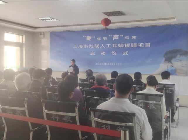 在上海市殘聯人工耳蝸援疆項目啟動儀式上,潘振飛代表葉城縣委、縣政府、上海援疆葉城分指致辭,對上海市殘聯一行來葉開展康復工作、實施人工耳蝸植入手術和送教代培項目表示衷心感謝。