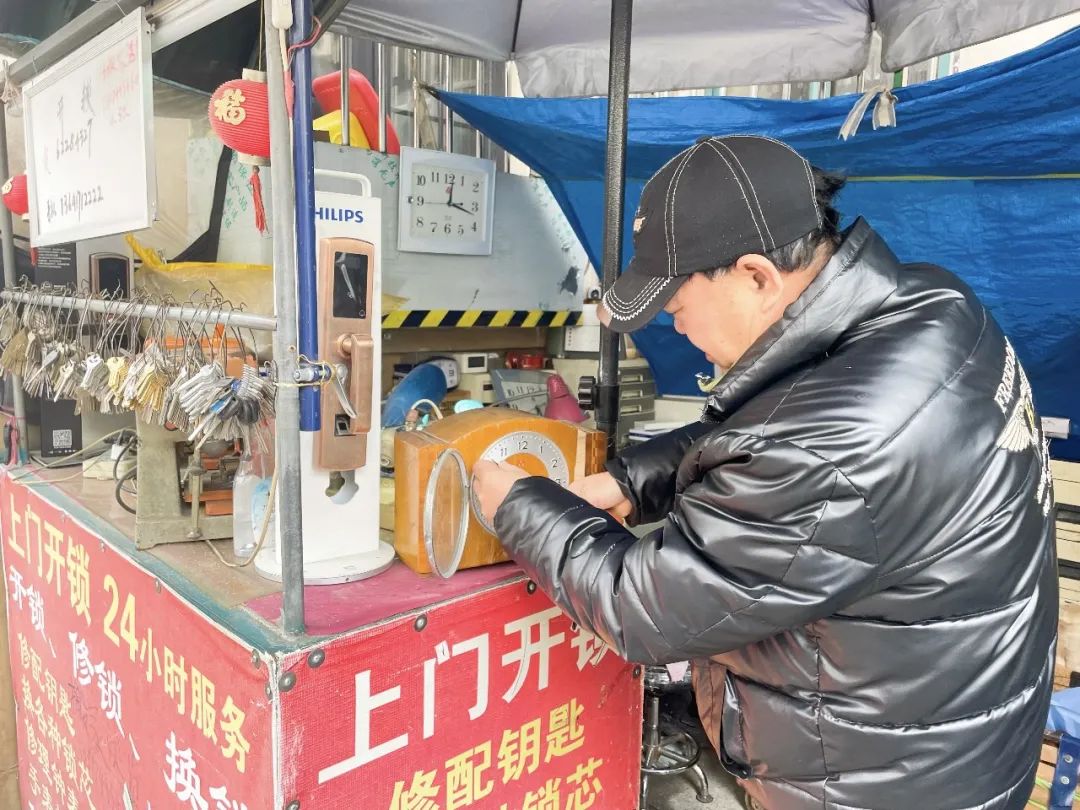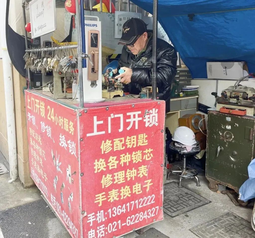 據了解,早在2000年,倪師傅就開始在仙霞路上擺攤做生意了。隨著知名度的提高,后來他在天山五村門口開設了一個固定鋪位,繼續為附近的居民服務,這一干就是20多年。雖然現在很多家庭用上了指紋鎖、密碼鎖等新產品,但倪師傅的生意卻沒有受到大的沖擊,“像指紋鎖、密碼鎖這種年輕人喜歡用的鎖,其實跟傳統鎖的機械部分原理都是一樣的,都是可以修的?!?/p>