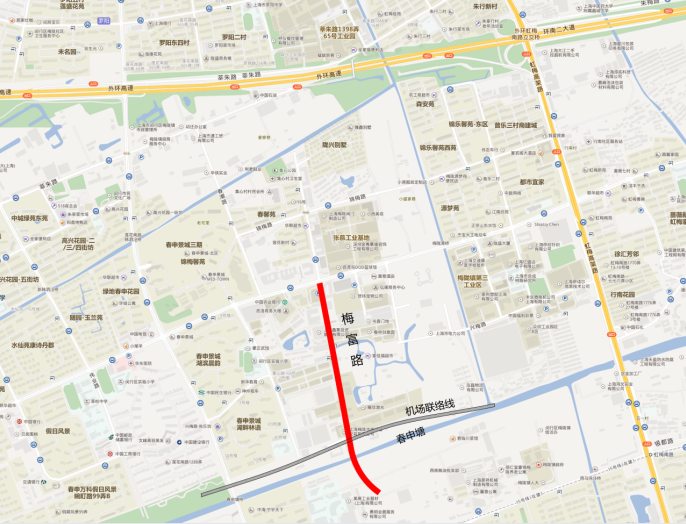 據悉,梅富路所在區域受春申塘阻隔,缺乏南北向貫通的道路,目前僅S4、蓮花南路、虹梅南路3條南北向干路過河。該段梅富路共分為兩個項目:梅富路(銀都路-賢薈路)和梅富路(賢薈路-春申路),梅富路(銀都路-賢薈路)新建工程作為地塊建設配套,目前正在推進初步設計,計劃年中開工建設。