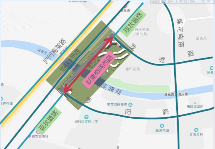 梅隴西路的建設,將打通斷頭路,完善區域路網,對新建道路周邊的商業地塊及小區公園提供更加便捷的出行條件,為周邊的滬閔路及蓮花路擁堵的交通提供分流,優化區域交通通行能力。