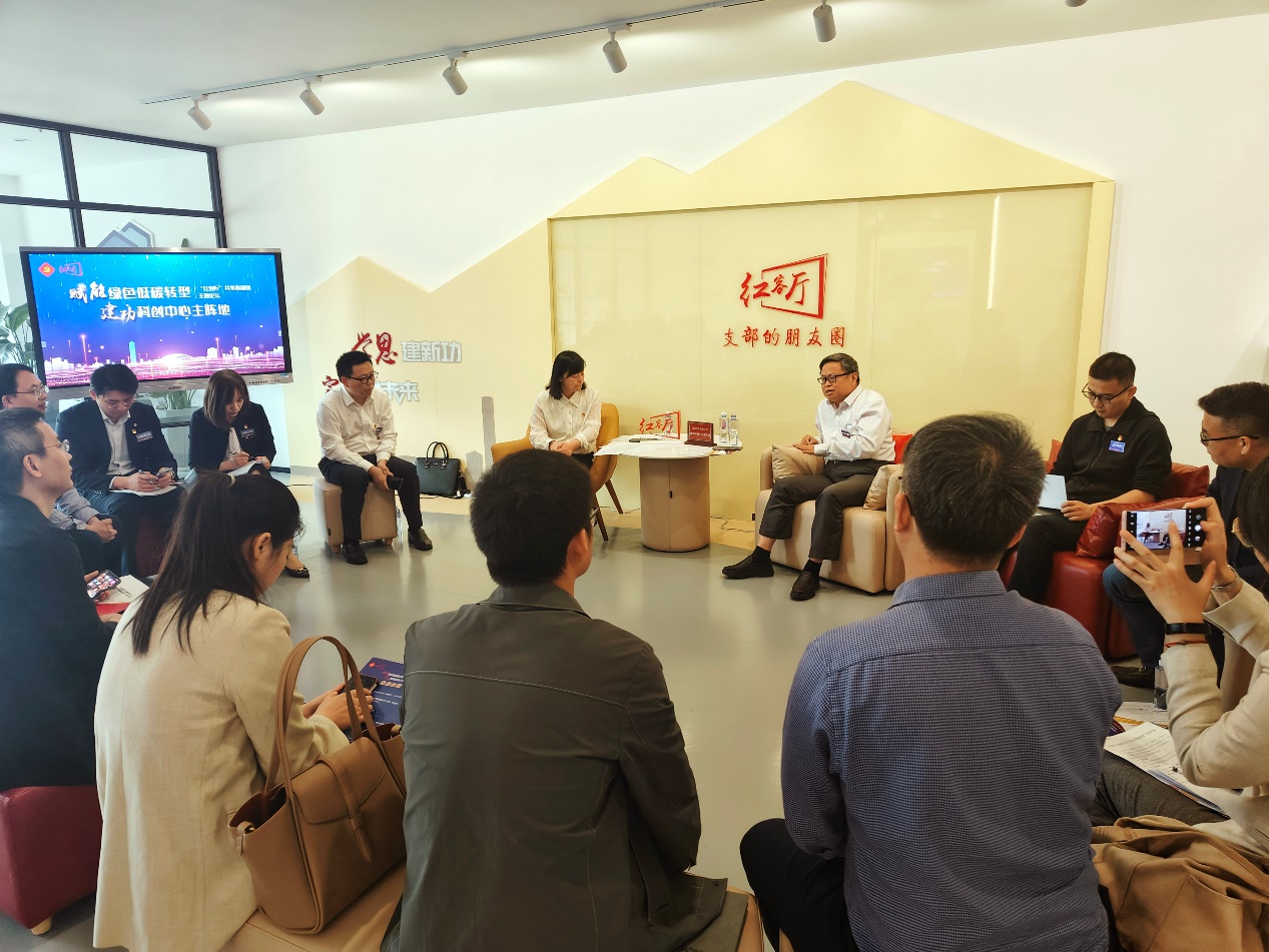 “支部家”中,召開了一場以低碳轉型為主題的產業鏈黨建聯盟論壇,相關企業和區發改委等職能部門的代表聚集一堂,為科創寶山的建設集智集力。該空間未來既是科創會客廳、人才驛站,也是“紅客廳”的共享直播間。