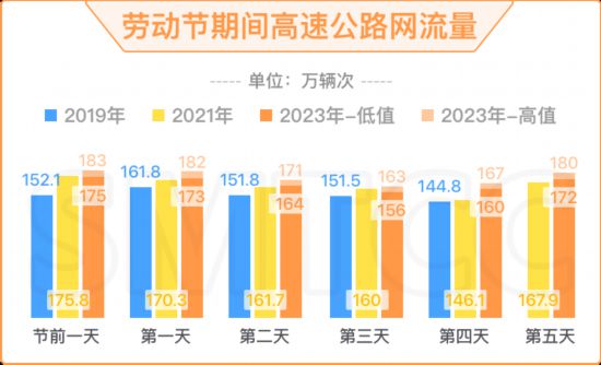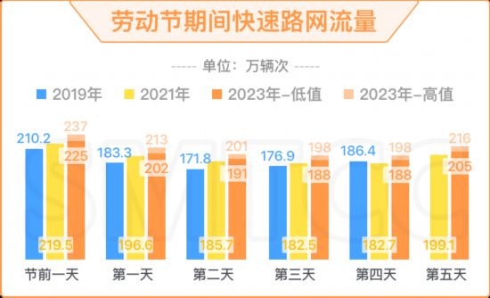 預計2023年勞動期間快速路車流規模日均流量在195-205萬輛次,與2021年同期相比增幅在3%-8%之間,較2019年同期增長9%-14%。