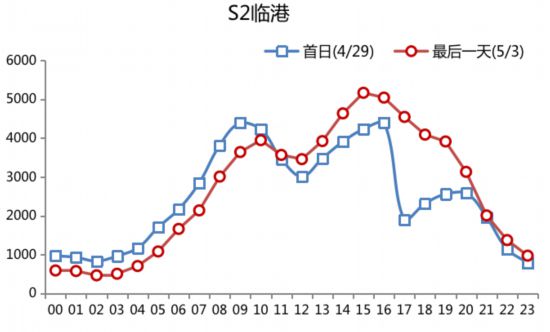 預計勞動節期間本市高速及地面道路省界道口總流量450-475萬輛次,日均流量在90-95萬輛次,與2021年同期相比增幅在4%-9%之間,較2019年同期增長1%-6%。