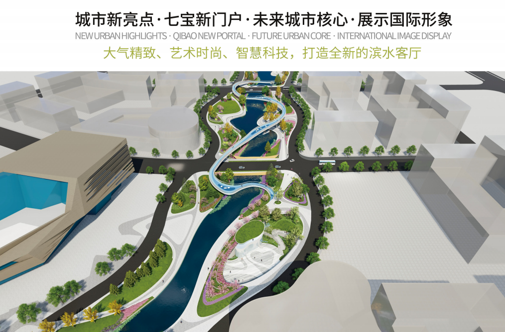 據了解,七寶生態商務區生態景觀提升項目位于七寶生態商務區的核心位置,是整個商務區的視覺聚焦點,也是各周邊新媒體、金融科技、藝術文化等產業的“客廳”。