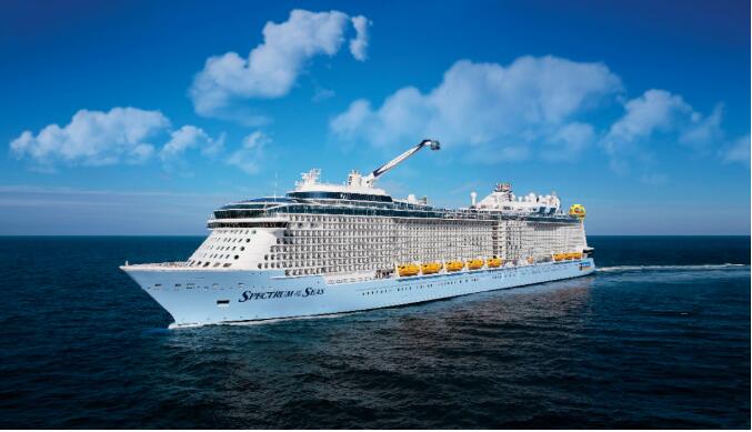 “海洋光譜號”是皇家加勒比斥資12.5億美元為各個年齡段中國度假者定制的超量子級豪華郵輪,總噸16.8萬噸,長348米、寬41米,共有16層客用甲板,2124間客房,可容納5064名賓客。郵輪上提供多達33種中西薈萃的餐飲選擇,無論是可供一日三餐海上盛宴的主餐廳和品種多樣的帆船自助餐廳,還是原汁純味的奧利弗意式餐廳、牛排館、中式火鍋、泉·日式料理和鐵板燒等特色餐廳,賓客可以在一個航程中盡享全球美食。白天賓客可以登上榮獲吉尼斯世界紀錄郵輪最高觀景臺的北極星,在距離海平面91米的高度,俯瞰船體、眺望海天和目的地的壯麗景色,亦可以在甲板上沖浪、跳傘、攀巖,或在海上最大室內運動館玩碰碰車、籃球、乒乓球、溜冰、擊劍、射劍、電競等活動。晚間多場皇家王牌音樂舞蹈大秀輪番上演,融合高科技和強大專業演藝陣容、沉浸式的場景演繹《絲綢之路》《魅舞今昔》《光譜奇俠》,令賓客宛如置身于百老匯或倫敦西區的夜生活?!昂Q蠊庾V號”上的“皇家大道”是海上最大的免稅購物街,有手表、首飾、箱包、化妝品等各類商品的一線、高端、潮流大牌的最新款式。被稱為“船中船”的“皇家府邸”,是專為套房賓客打造的VIP休閑和餐飲場所?!昂Q蠊庾V號”堪稱“最適宜親子的郵輪”,包括數十種運動項目、復式雙層“完美家庭套房”、適合6個月到18歲的兒童和青少年的海上歷奇俱樂部和寓教于樂的國際文化氛圍。2019年6月-12月“海洋光譜號”從上海成功運營48個航次,接待過超23萬名中外賓客,收獲了來自媒體和消費者的贊譽和好評。