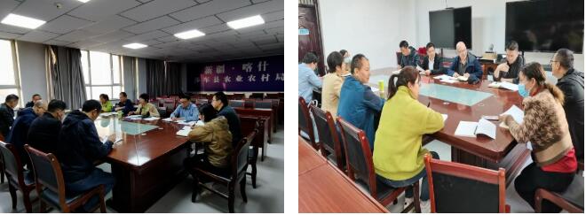 在莎車縣農業農村局,考察組認真聽取縣農業農村局局長趙曉莉有關莎車縣上海援疆項目的實施完成情況的介紹,雙方就鄉村振興項目進行了深入交流溝通。