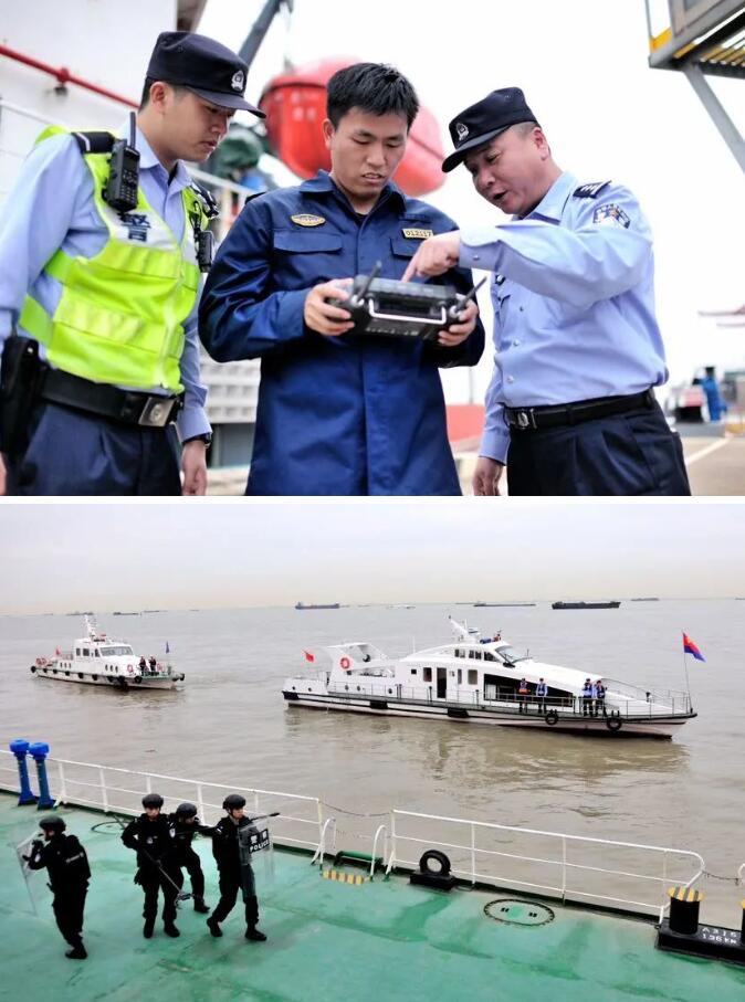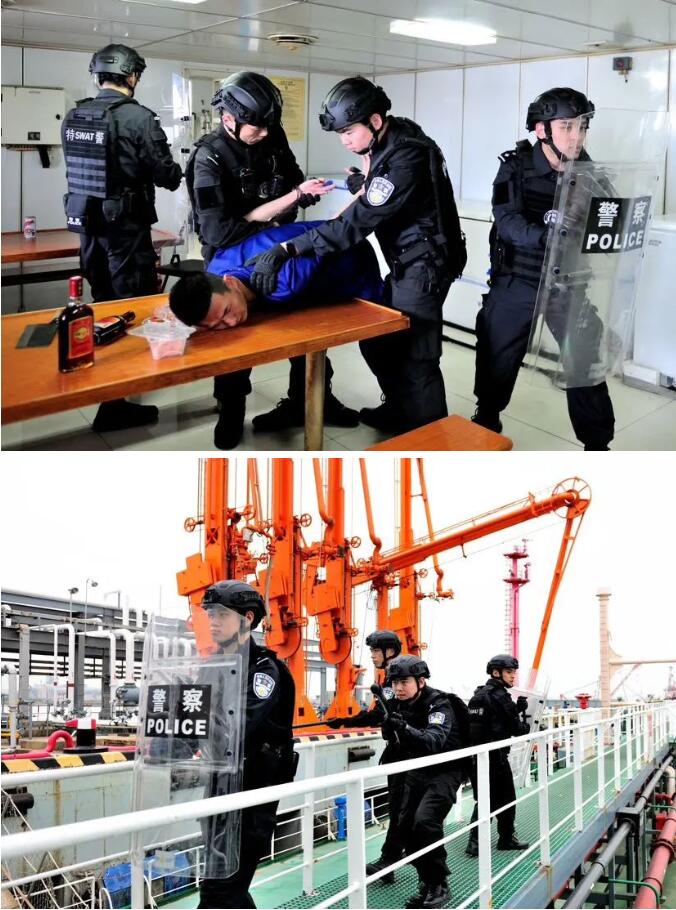 演練中,某毗鄰水域的煤氣廠報警稱,一艘運輸?;返拇坏剿虼a頭??亢笠恢蔽葱敦?。經聯系船上工作人員,得知船員張某因個人情感糾紛,揚言將通過泄露船上?;穪戆l泄個人不滿。接警后,指揮中心立刻利用無人機對現場進行偵查,并聯合相關部門發布應急處突方案,根據指令,水上派出所立即駕駛巡邏艇到達涉事水域;特警支隊以最小單位作戰模式迅速登船進行搜索和抓捕。最終,船員張某被制服后帶離,成功將事態控制。