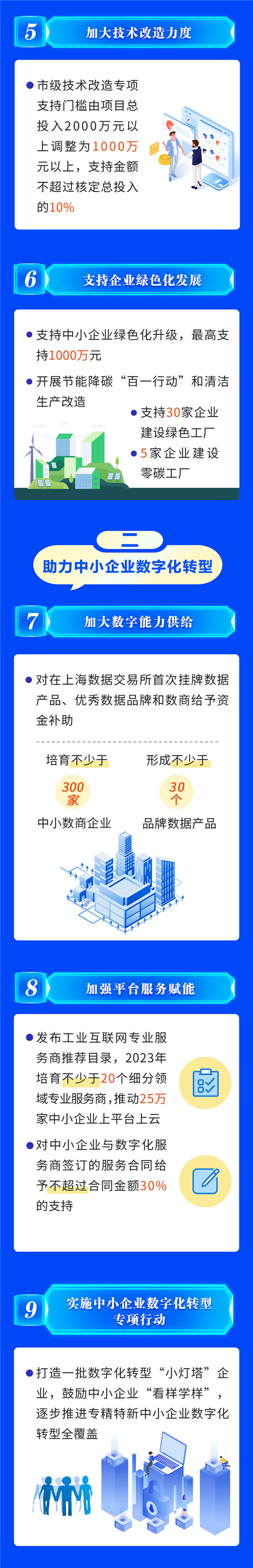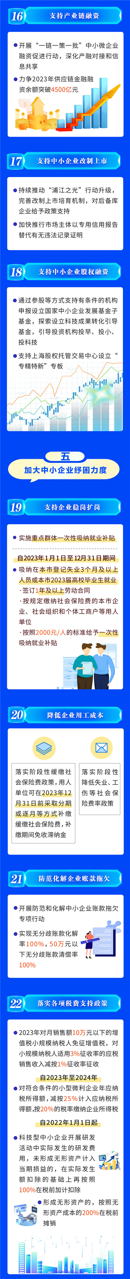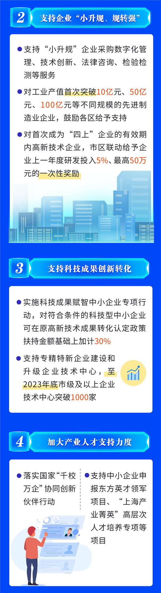 第一,強化產業政策支撐。閔行區始終貫徹落實《上海市促進中小企業發展促進條例》《上海重振經濟50條》主要精神,連續推出惠企政策,從“閔10條”到“閔18條”,內容涵蓋房屋租金減免、擴大有效投資、穩崗補貼、就業培訓補貼等各方面。據統計,2022年就落實財政扶持和各類惠企政策超77億元,全年減稅降費規模超150億元,扶持企業資金近80%投入到中小微企業。后續將持續貫徹《若干措施》六個方面28條舉措的工作要求,逐條對照,進一步推動中小微企業穩增長、調結構、強能力。