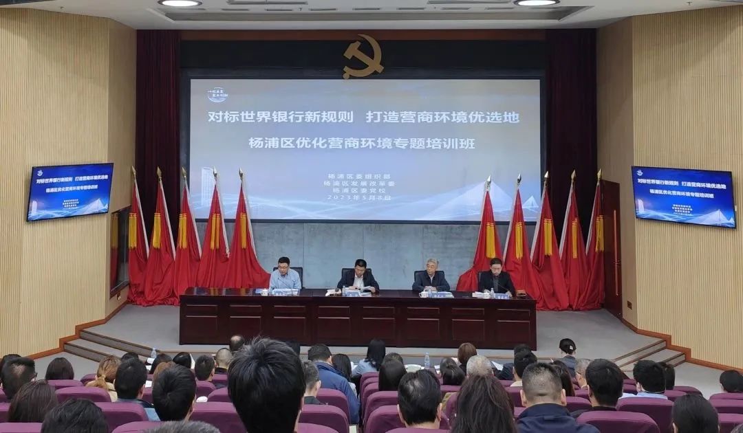 2023年5月8日、5月15日,區委組織部、區發展改革委、區委黨校聯合舉辦“對標世界銀行新規則 打造營商環境優選地”培訓班,這是近年來楊浦區首次面向全區干部舉辦的營商環境專題培訓班,在全市各區也屬首次。此次培訓班是2023年楊浦區干部專業化能力提升的重點班次,旨在通過集中培訓,幫助學員拓寬國際視野、增強法治思維、學習先進經驗、促進跨界交流,推動楊浦營商環境改革的“施工圖”轉化為“實景畫”。