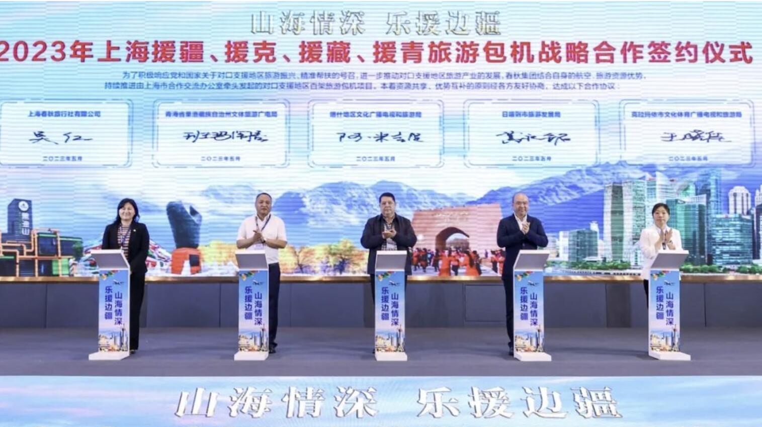 5月18日上午,“山海情深 樂援邊疆”——2023年上海市對口支援百架旅游包機暨上?!の鞑囟ㄈ帐罪w啟動儀式在滬舉行。