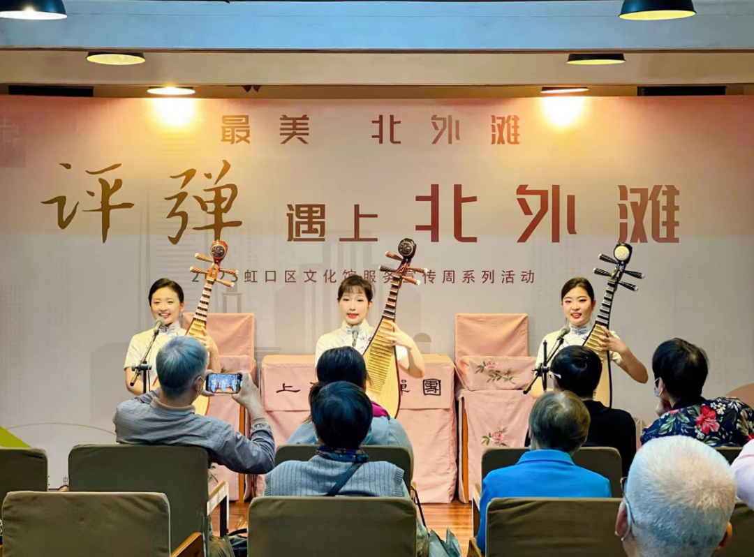 這場“評彈遇上北外灘”文藝演出也掀開了“最美北外灘”虹口區文化館服務宣傳周的序幕。虹口區文化館相關負責人表示,評彈藝術有著四百多年的歷史,在承載了“一江一河”歷史記憶的百年建筑河濱大樓中演繹評彈這一傳統文化,希望可以更好地帶領市民感受清麗典雅的藝術韻味,傳承和發揚優秀傳統文化,提升公共文化服務品質。