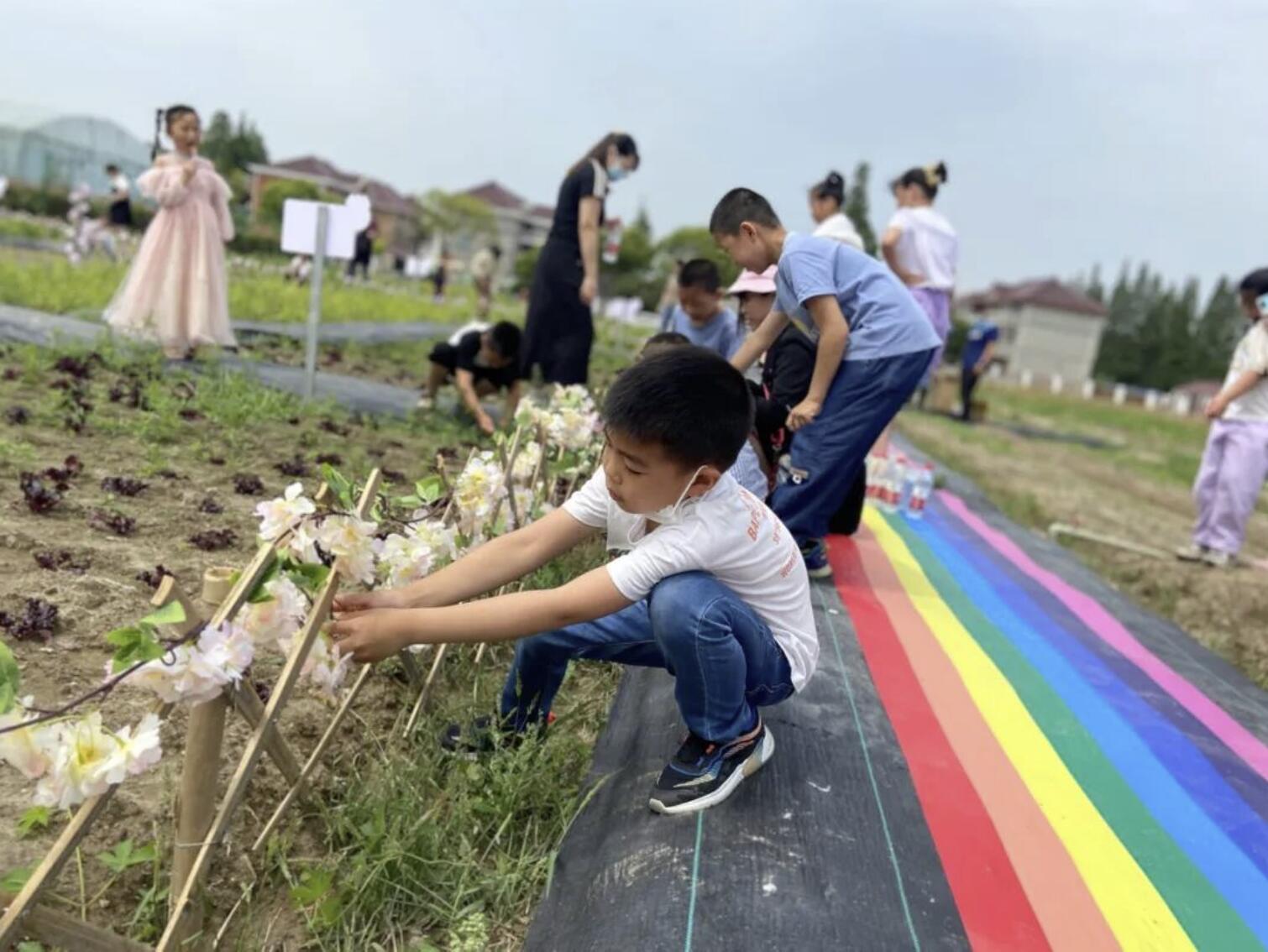 近日,乘著鄉野的微風,寶山區月浦鎮月獅村的父母和孩子們邀請擅長耕種的老一輩,并在“睦鄰坊”社區指導服務中心社工師的帶領下開展菜園改造活動。