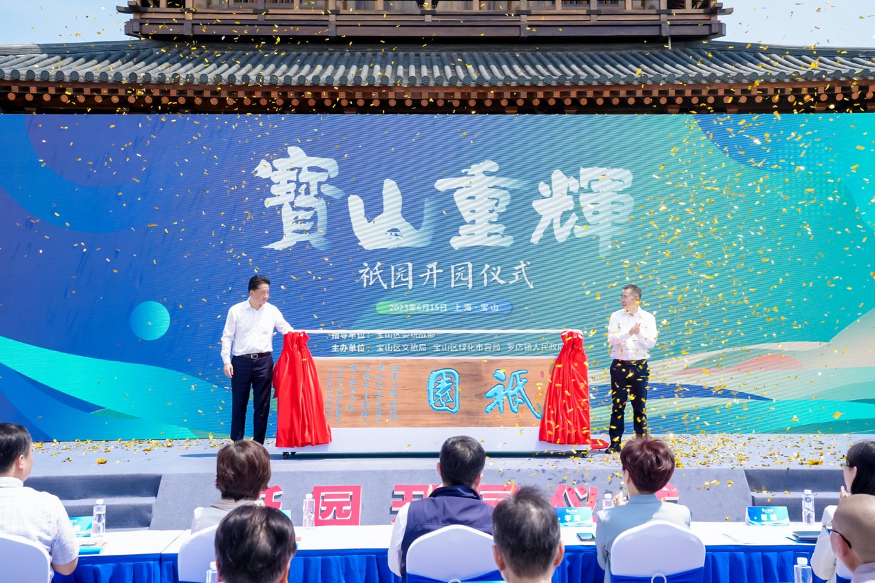 上海市委統戰部二級巡視員、市歐美同學會黨組書記李霞為首批4家寶山區“新時代統戰文化軟實力工程”實踐基地授牌。寶山區綠化市容局局長張未劼、羅店鎮黨委書記王偉杰一同為祇園進行開園揭幕。