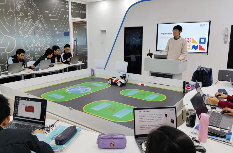 袁可一在交大附中講授自己設計的人工智能創新型課程。華東師范大學供圖