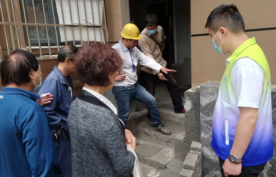 7號樓棟加梯施工過程中,居委會在走訪調查中了解到,底樓住戶對原先的坡道設計方案不太滿意,認為會泄露個人隱私。居民區黨總支高度重視,協調微網格長、專職網格員、業委會、加梯公司、居民代表等各方人員,讓大家能聚集在加梯現場,當場召開協商會。