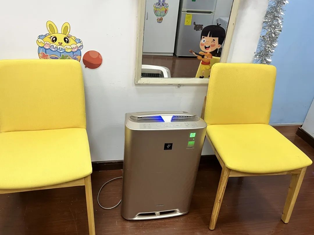 “二中心媽咪小屋”設立在學校六樓,女職工們可以乘坐電梯直達,該樓層十分舒適安靜。這間媽咪小屋雖然裝修簡單,但設施齊全,小屋內有空調、空氣凈化器、消毒柜、冰箱、桌椅等設施,并且寬敞明亮,媽媽們在里面休息時可以感受到輕松、愉快的氛圍。此外,小屋內的墻壁、桌子、柜子內的裝飾都有過考量,旨在為女職工打造更溫馨舒適的環境,不僅如此,小屋內還擺放了雜志等書籍,屋外配有咖啡機,供職場媽媽們使用。