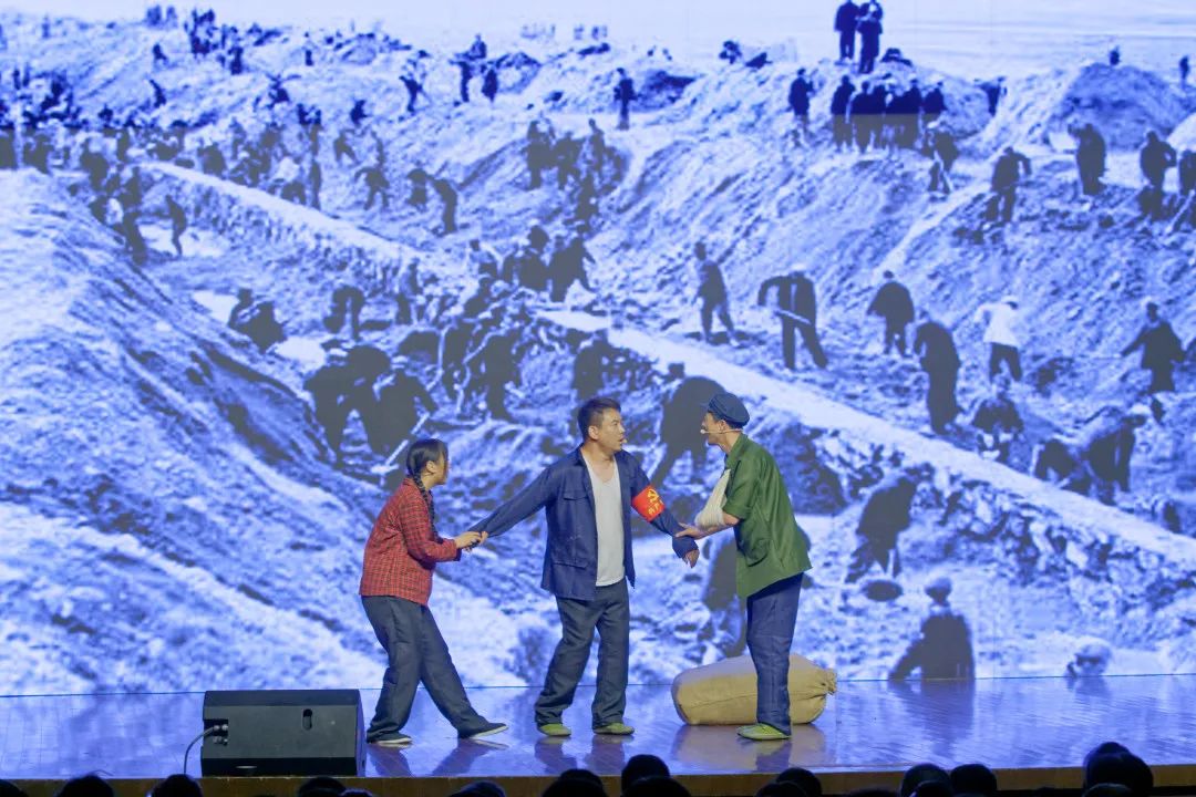本劇在籌備期間,主創團隊通過采訪大治河工程的親歷者,結合檔案館、媒體等途徑征集到的相關報道和珍貴影像等素材,匯編成冊,作為情景黨課編排的史料參照。在此基礎上,對照人物原型進行角色塑造,并多次開展劇本研討會,反復修改、打磨劇本。多位大治河工程的參與者來到演出現場,并受邀上臺接受褒獎?!?977年,我只有22歲,還是個年輕小伙子。當時我參加了大隊里的黨員突擊隊,投入大治河建設?!睆埲蕶嗬先苏f道,“我希望現在的年輕人也能不負韶華,為鄉村振興作出應有的貢獻?!?/p>
