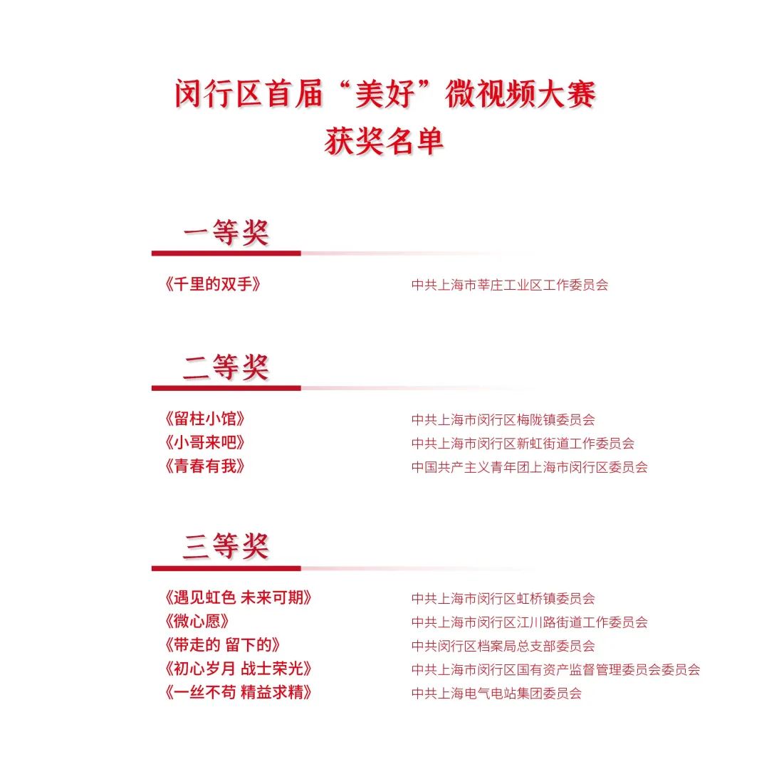 據悉,“美好”微視頻大賽自今年2月啟動以來,面向社會各界共收到了來自14個鎮、街道、莘莊工業區,18個委辦局、19個區域單位共計205部作品。立足作品主題、表現手法、鏡頭語言等方面,經過前期分組初審和中期線下評審,最終評選出了一、二、三等獎、單項獎、優勝獎和提名獎,并綜合組織發動及獲獎情況,評選出了優秀組織獎,為共同執筆繪就閔行故事,點亮閔行美好凝聚力量。