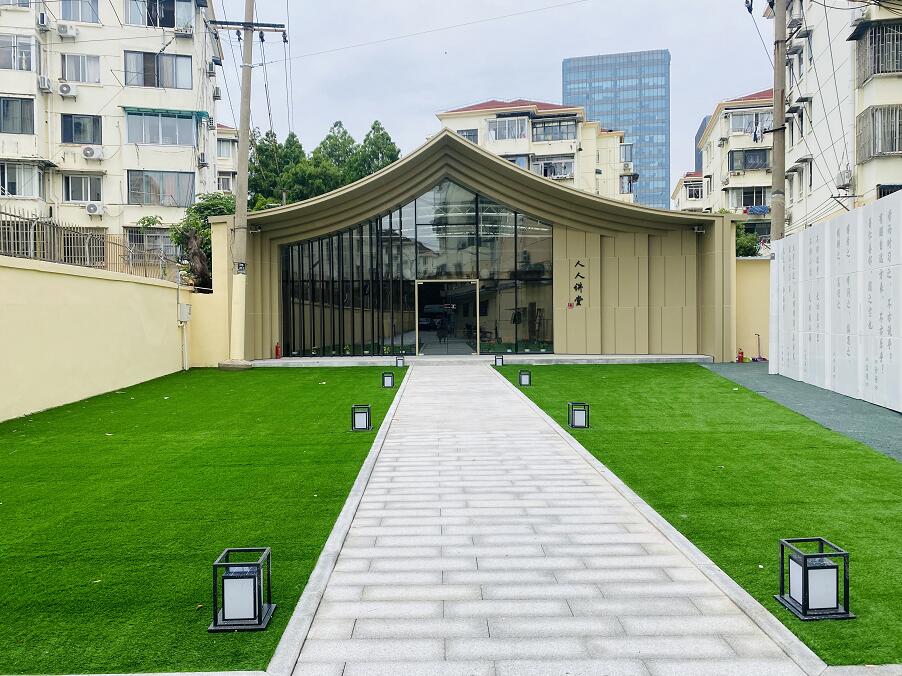 “人人講堂”屋頂造型設計為“人”字,在外觀設計上融合了“人民城市人民建、人民城市為人民”理念,又形似一本正在翻閱的書籍,融合了煙火氣和書香味。