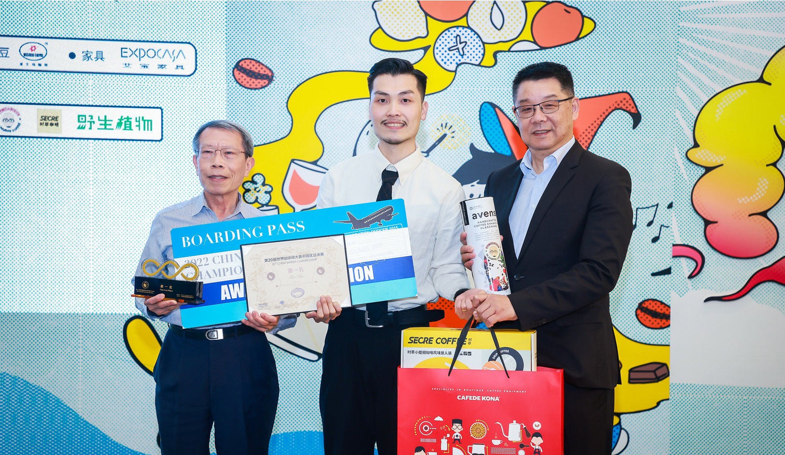王貴峰(中)獲2022年世界咖啡師大賽中國區總冠軍。受訪者供圖