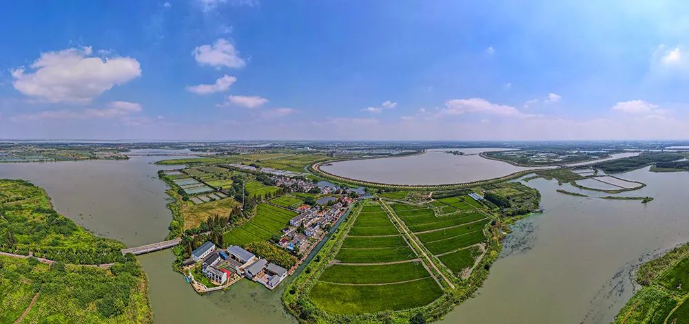 在位于示范區滬蘇交界處的元蕩橋上,一腳踏在上海青浦,一腳踏在江蘇吳江,環顧四周江南水鄉特色元素,“藍色珠鏈”水環境綜合治理、江南圩田展示園、?;~塘展示園等多個生態綠色項目綠意盎然。